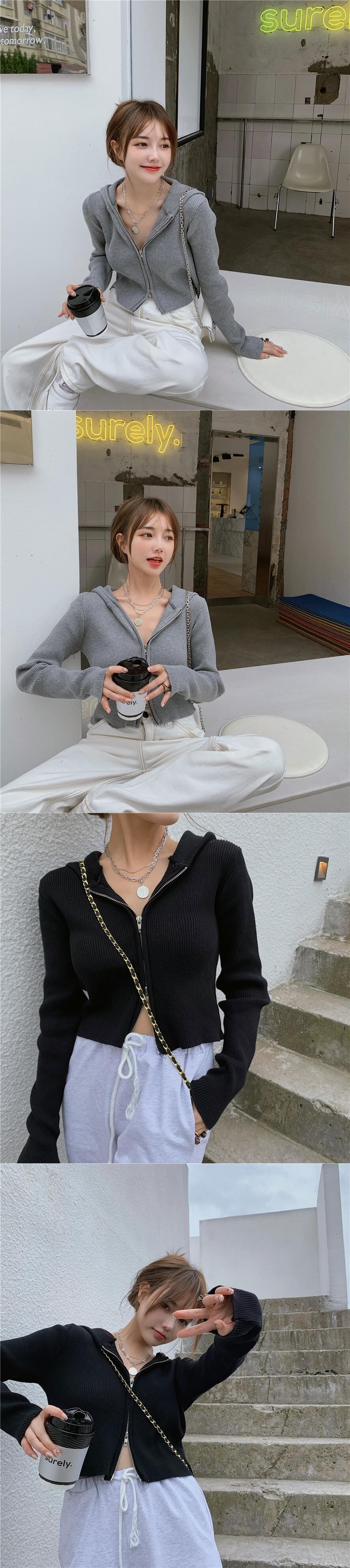 スプリングセーター カーディガンジャケット フードジッパーショートニットレディース ピンク 春物 スーパーモール4141186092