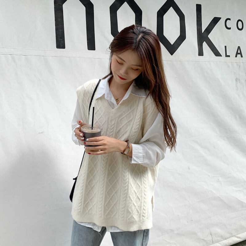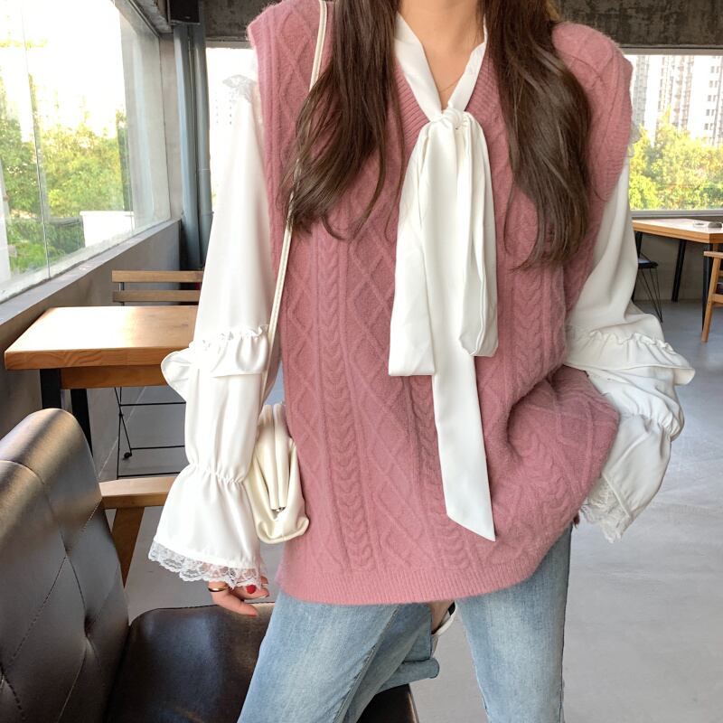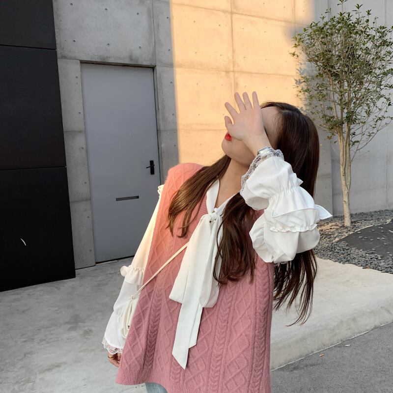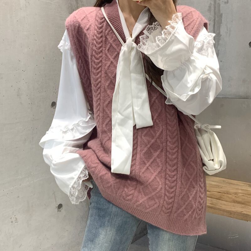 色:味powderパウダーベストワンピース,シングルアプリコットベスト,白いシャツワンピース
