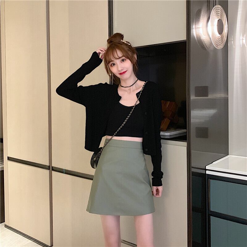 レッドレザースカート スプリングハイウェストウェスト薄手Aラインショート 春物 スーパーモール68791091845