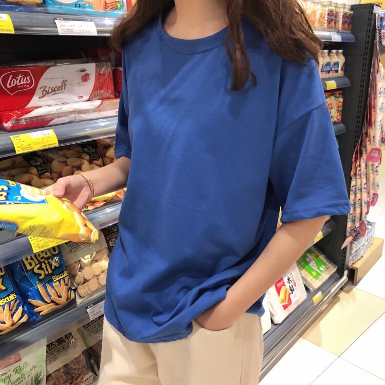 ホワイトTシャツ シャツ サマールーズソリッド カラートップス 夏物 ソリッドカラー スーパーモール80762654416