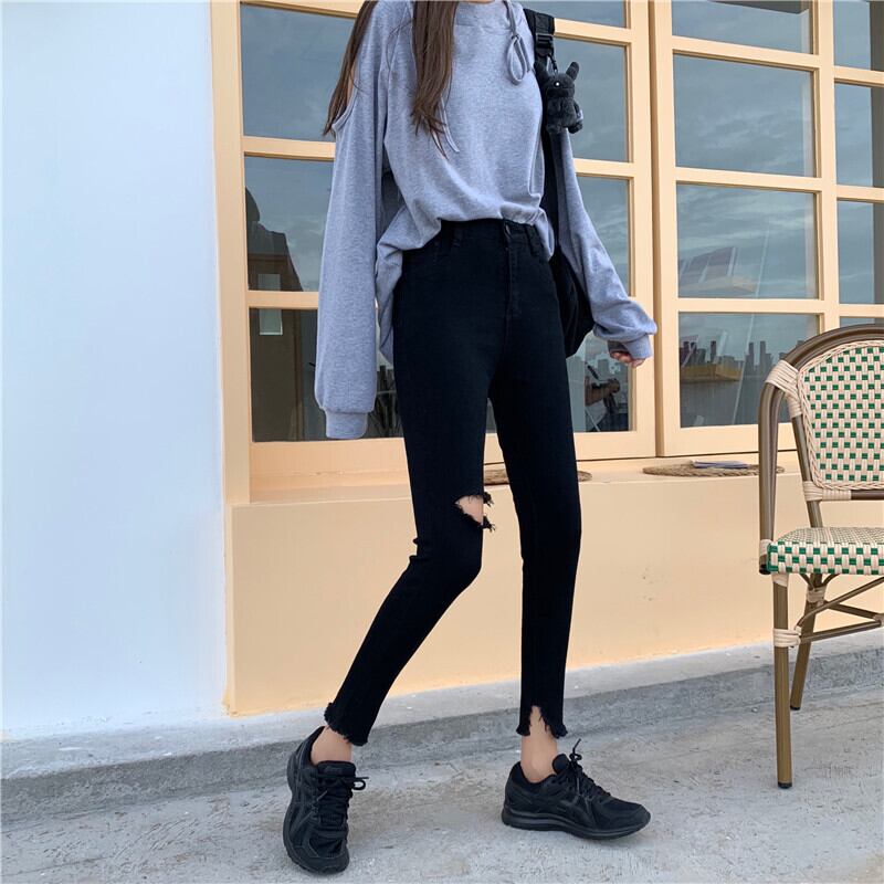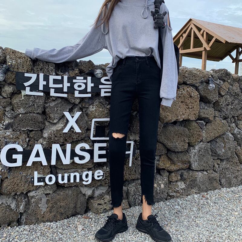 ブラッククロップドスプリングハイウェストジーンズ スリムレギンス 春物 スーパーモール19517053232