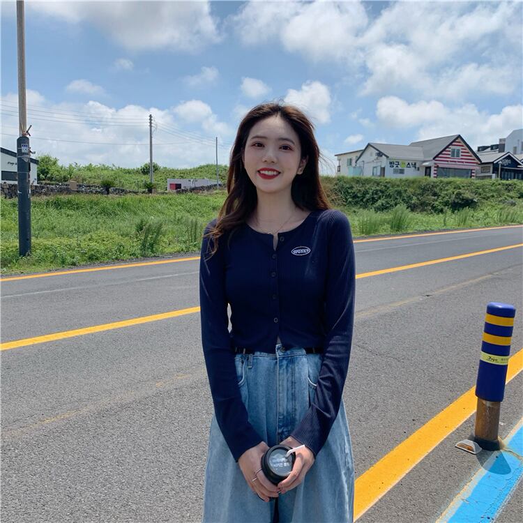 ブラックセーター スプリングスリムカーディガンショートトップス 春物 スーパーモール5317530195