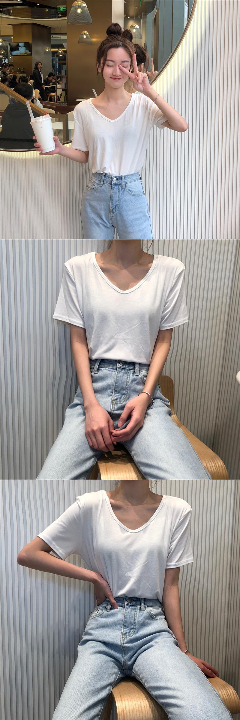 スタイルVネックショートTシャツ シャツ レディースサマーベーシックルーズトップス 夏物 スーパーモール30936345716