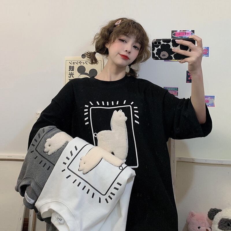 スプリング刺繍Tシャツ ルーズトップス 春物 スーパーモール41648104718