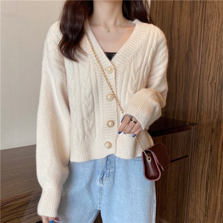 Vネックニットカーディガンジャケット スプリングオータムスタイルセーター ショートトップス 春物 秋物 スーパーモール68200108807