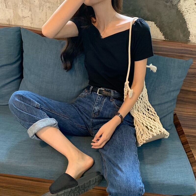 VネックショートTシャツ シャツ スプリングスタイルブラックトップス 春物 スーパーモール83353166971