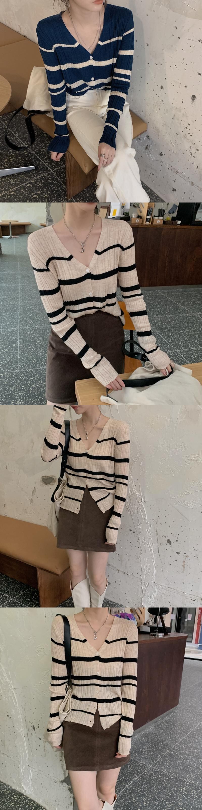 スタイルストライプセーター スプリングスタンダードVネックニットカーディガン レトロ 春物 スーパーモール60355249609