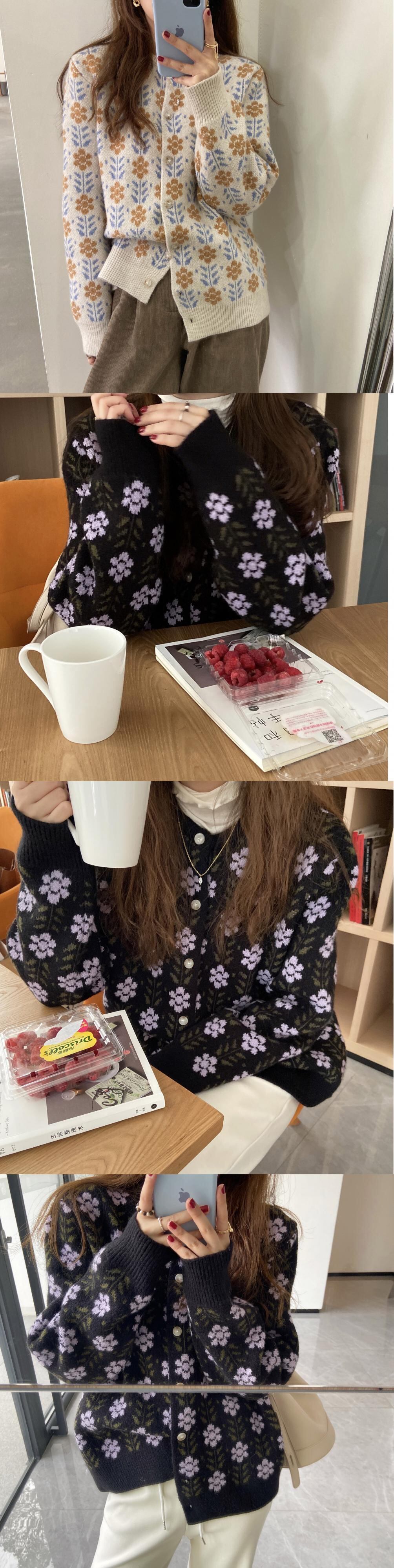 スプリングオータムスタイルFlowerデザイン ラウンドネックセーター ニットカーディガンジャケット 春物 秋物 Oネック フラワーデザイン スーパーモール8958103579