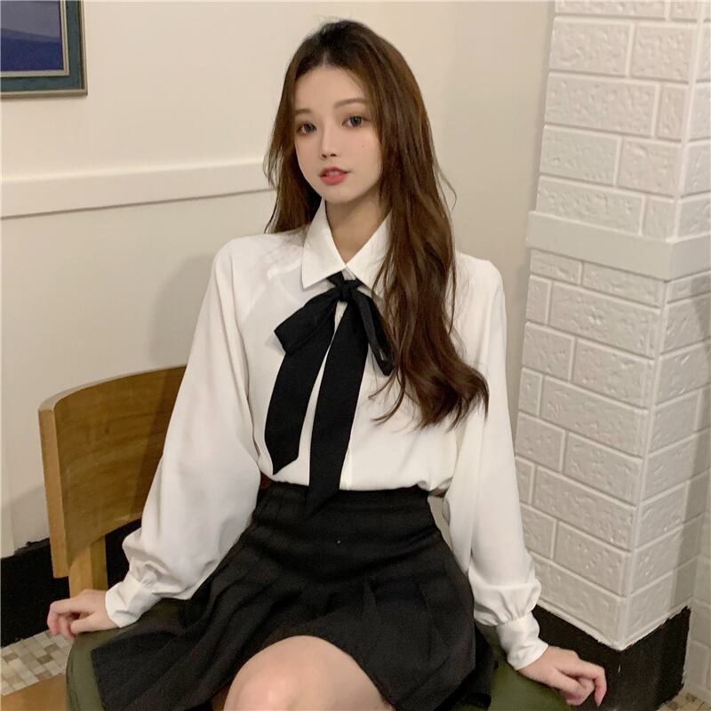 シフォンシャツ レディーススプリングオータムトップス スタンダードホワイト ロング レトロ 春物 秋物 スーパーモール7569141675