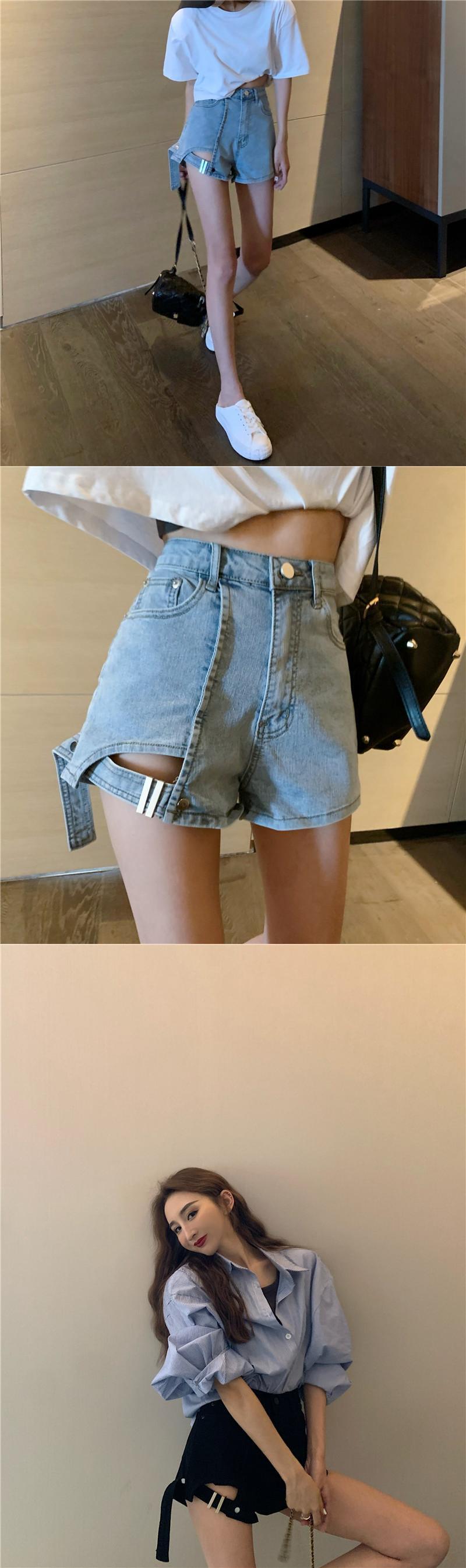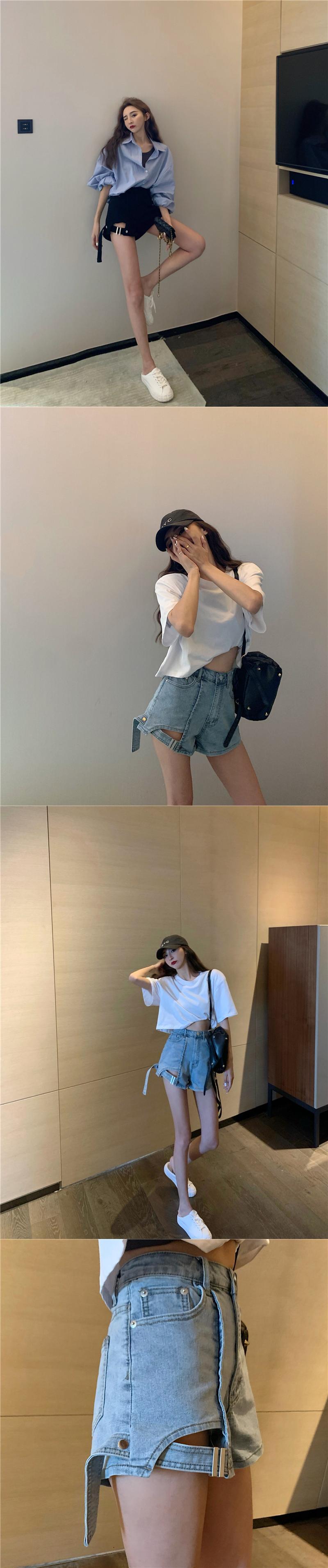 ハイウェストジーンズ スプリングルーズパンツ ブラックショーツ 春物 ブルマー スーパーモール14019902634