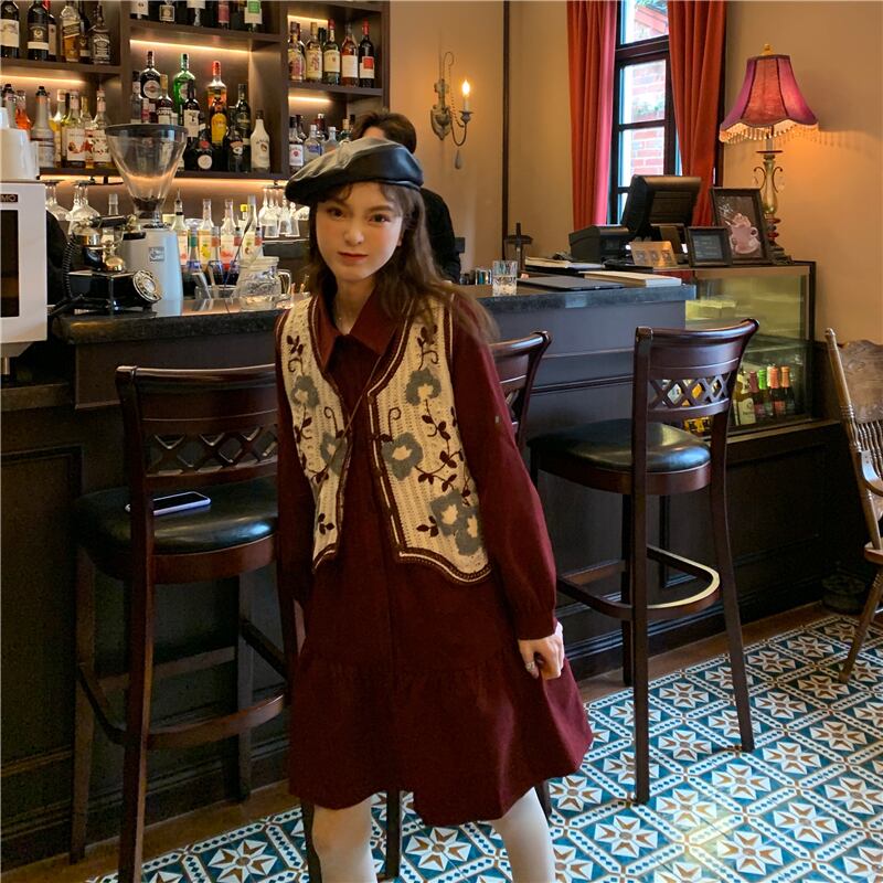 色:赤いベストシングル,ブラックベストワンピース,カーキ一枚,赤いスカートシングル,黒スカートワンピース,カーキ色のスカート