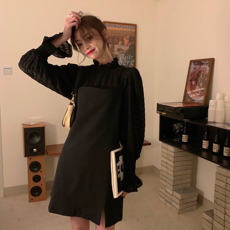 ブラックドレス スカート スプリングスタイル薄手 春物 スーパーモール38651517272