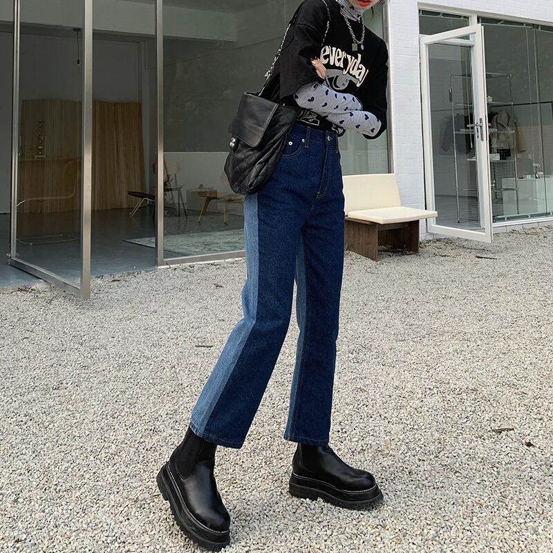 バックカラーパンツ スプリングハイウェストジーンズ レディーススタンダード薄手 レトロ 春物 スーパーモール28730865561