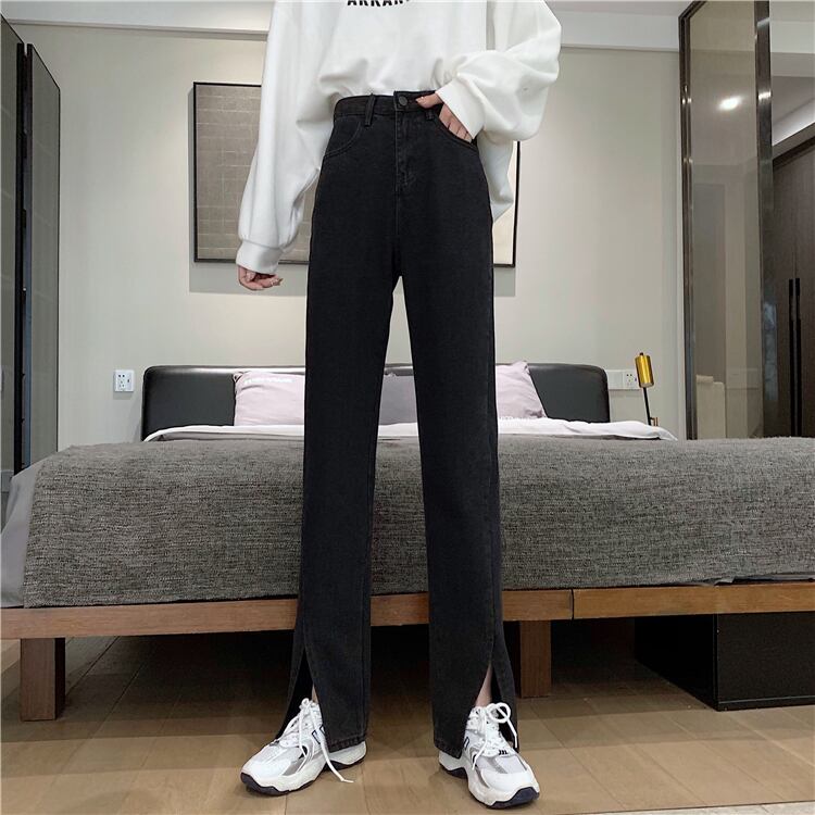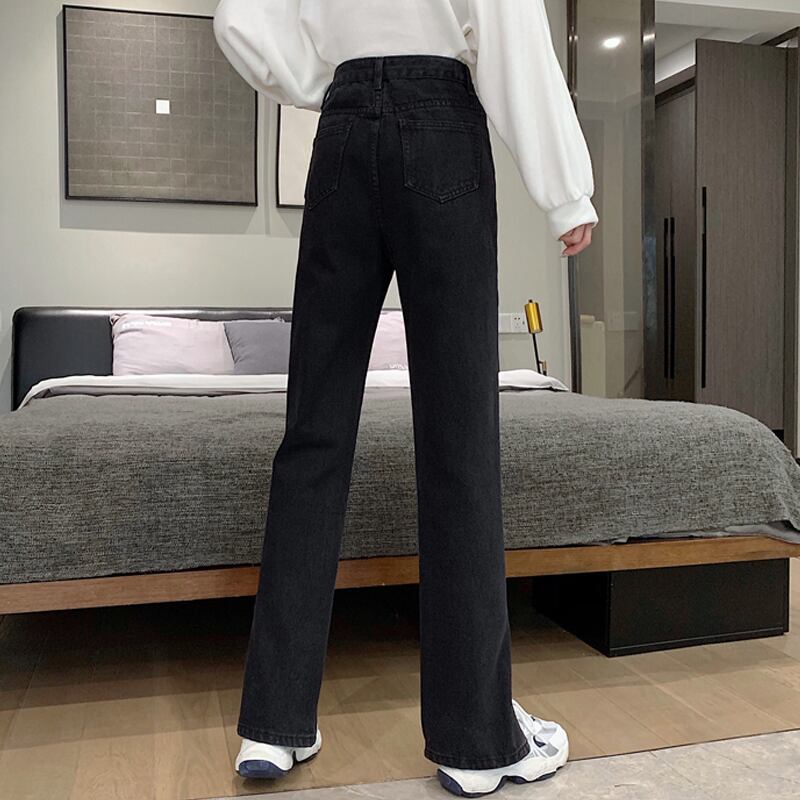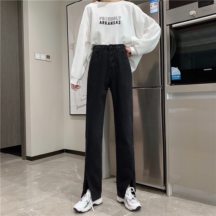 スプリングオータムブラックパンツ ジーンズ ハイウェスト薄手 ストリート 春物 秋物 スーパーモール1987479192