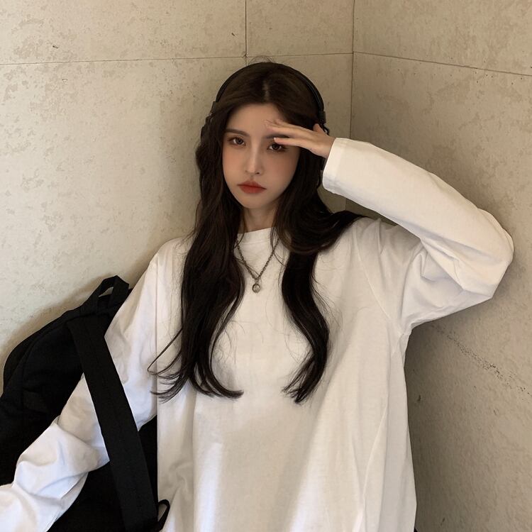 ホワイトTシャツ シャツ スプリングルーズトップス ロング 春物 スーパーモール18574318248
