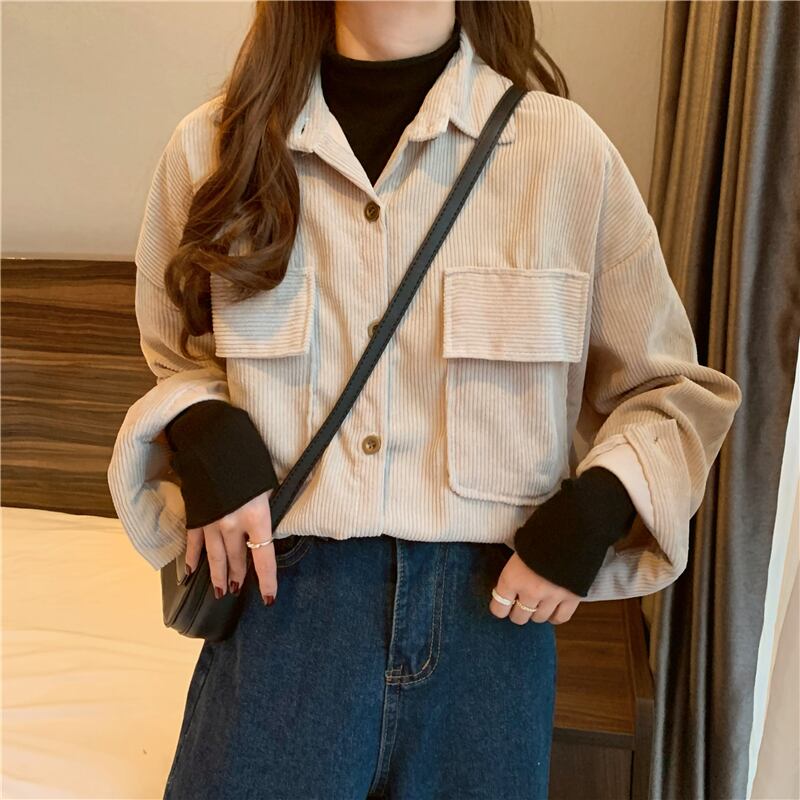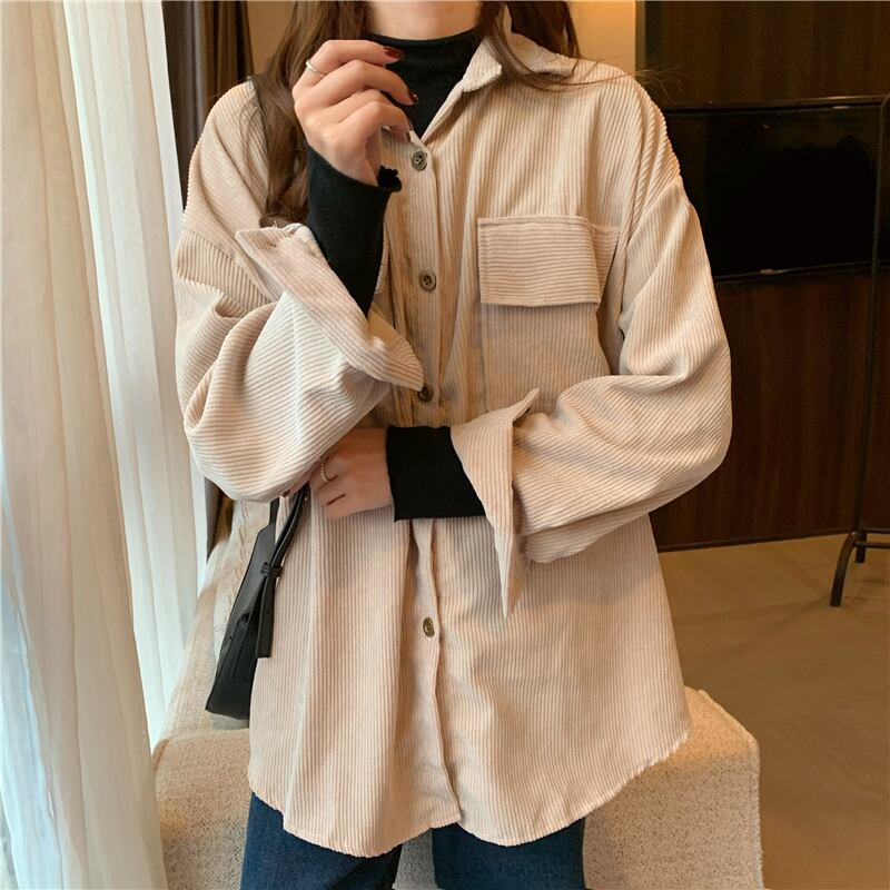 スタンダードコーデュロイシャツ スプリングスタイルルーズカラージャケット レトロ 春物 スーパーモール90196501388