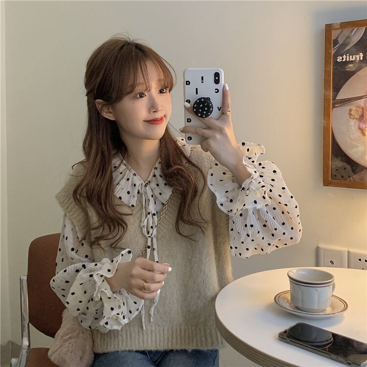 スプリングオータムスタイルシフォンシャツ ニットセーター 春物 秋物 スーパーモール64813059464