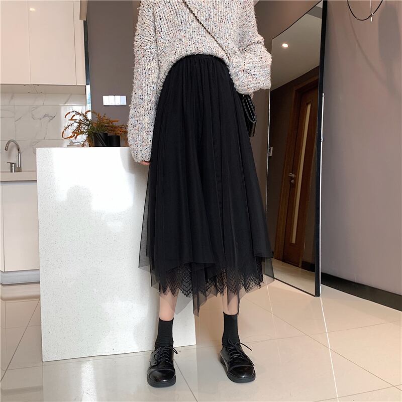 メッシュスカート スプリングオータムAライン薄手ハイウェストウェスト 春物 秋物 スーパーモール61389895308