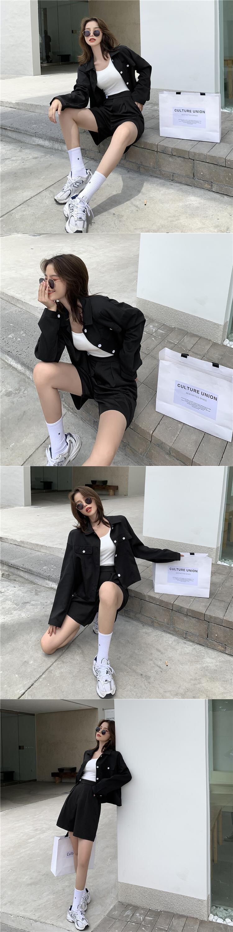 色:コートブルーワンピース,ジャケットブラックシングル,ショーツブルーワンピース,黒のショートパンツ