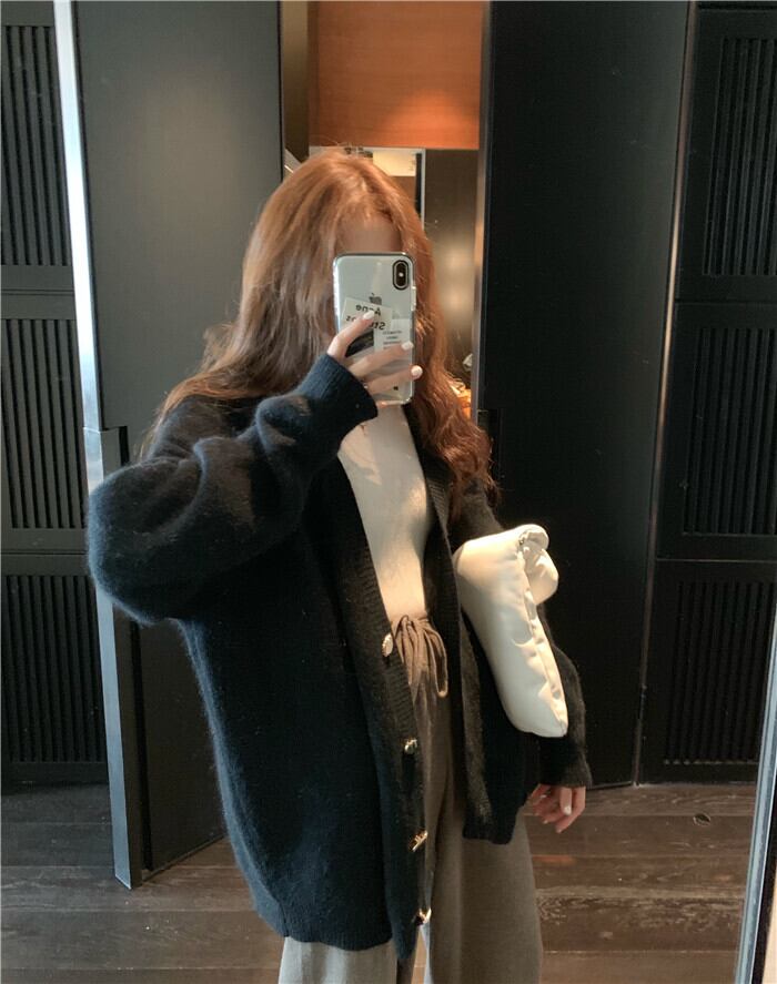 スタイルスタンダードブラックセーター レディーススプリングオータムニットカーディガンジャケット ロング レトロ 春物 秋物 スーパーモール6302629299
