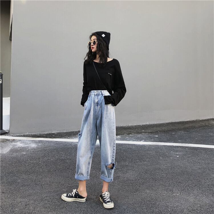 ウェストジーンズ レディーススプリングスタンダードパンツ ルーズ レトロ 春物 スーパーモール11684024864