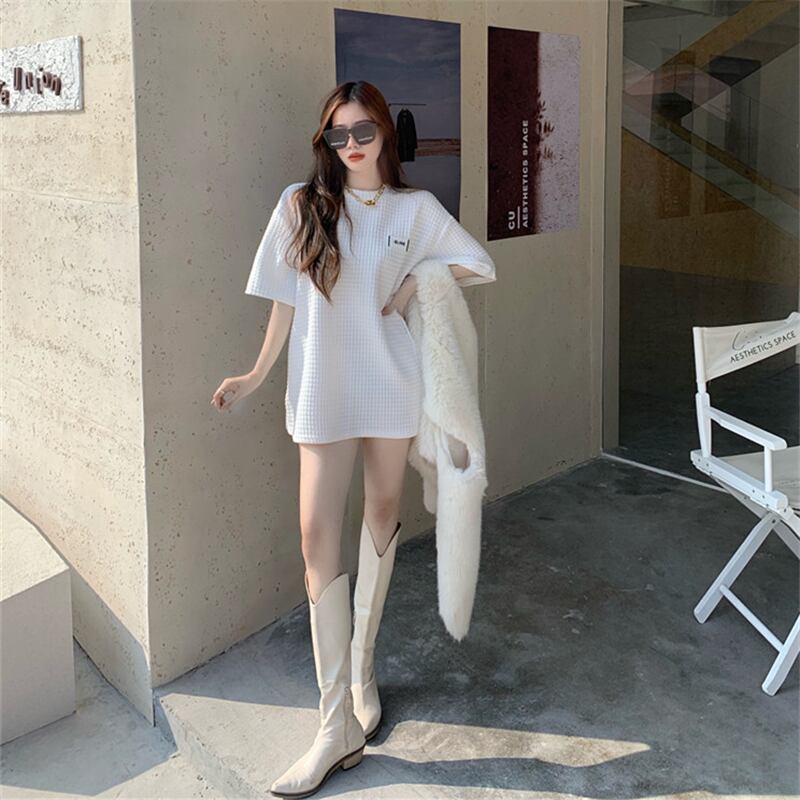 トップス スプリングルーズホワイトTシャツ レディース レッド 春物 スーパーモール28497566114