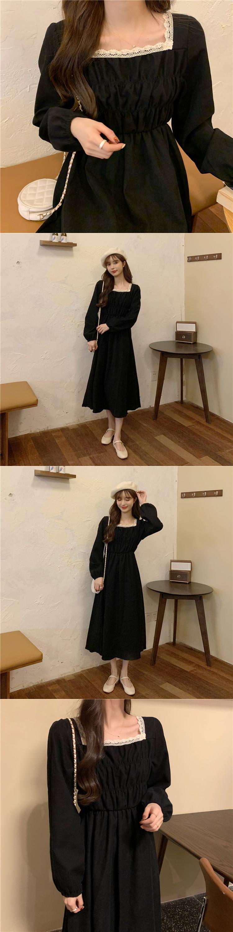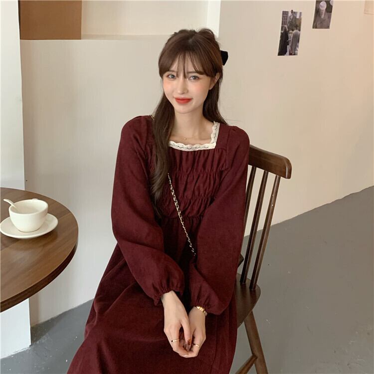 スプリングオータムカラーレーススカート ウェストレッドドレス Aライン 春物 秋物 スクウェア スーパーモール24026091092
