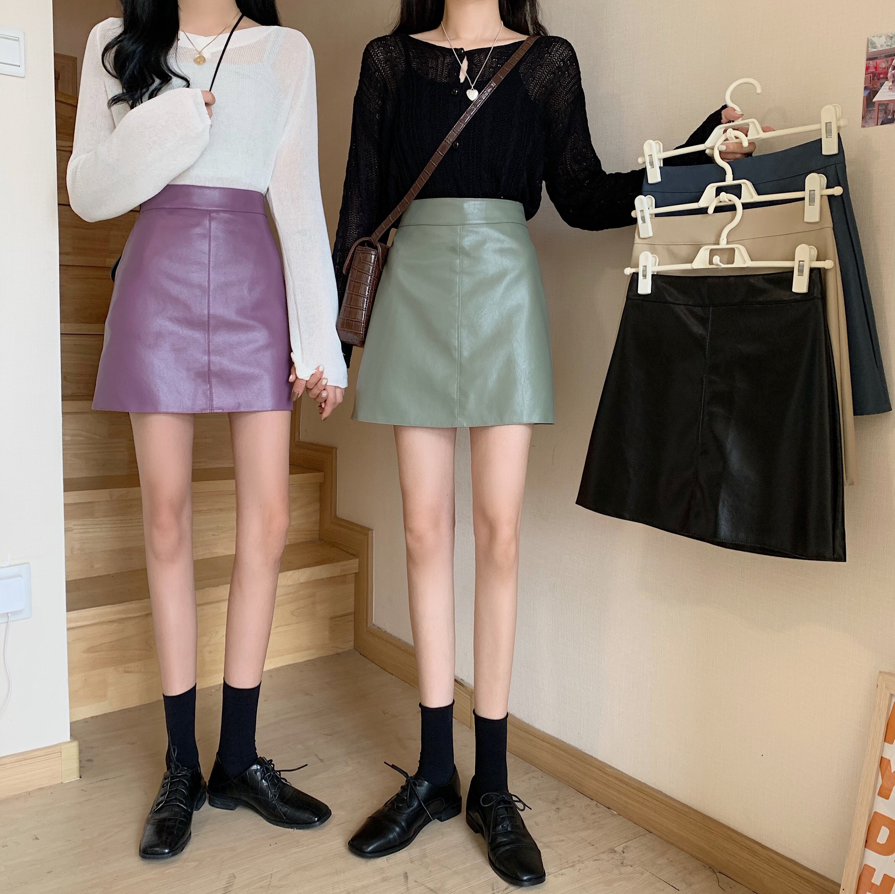 スプリングオータムレザースカート Aラインハイウェストウェストショート 春物 秋物 スーパーモール35568214008