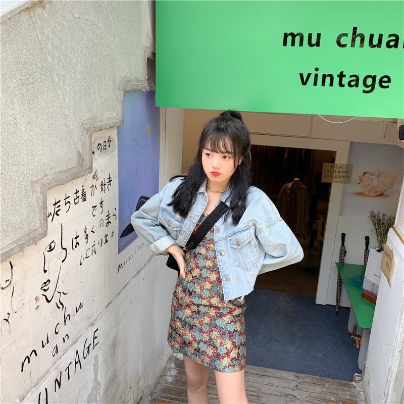 スプリングレディーススタンダードスカート ブルーショートジャケット レトロ 春物 スーパーモール30173039667