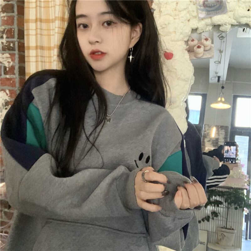 スプリングオータムバックプリントカラーベルベットセーター レディースルーズスタンダードジャケット レトロ 春物 秋物 スーパーモール55255683944