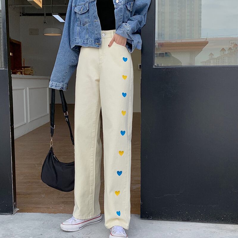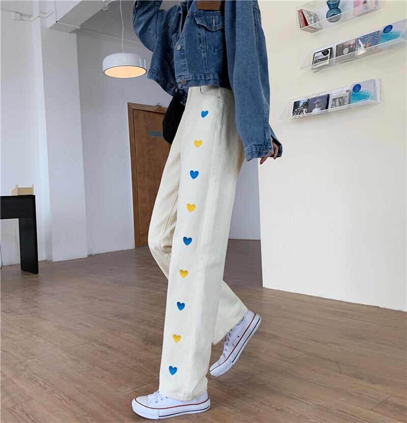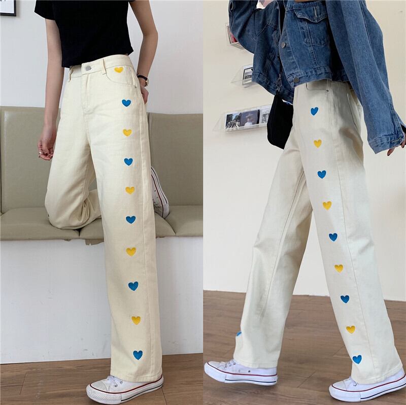 ハイウェストウェストジーンズ スプリングルーズパンツ 薄手 レッド 刺繍 春物 スーパーモール80041173462