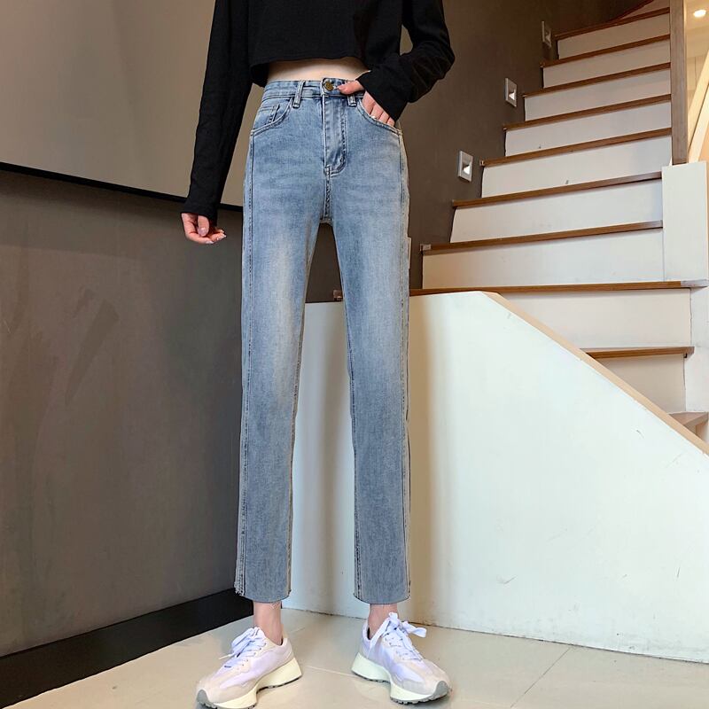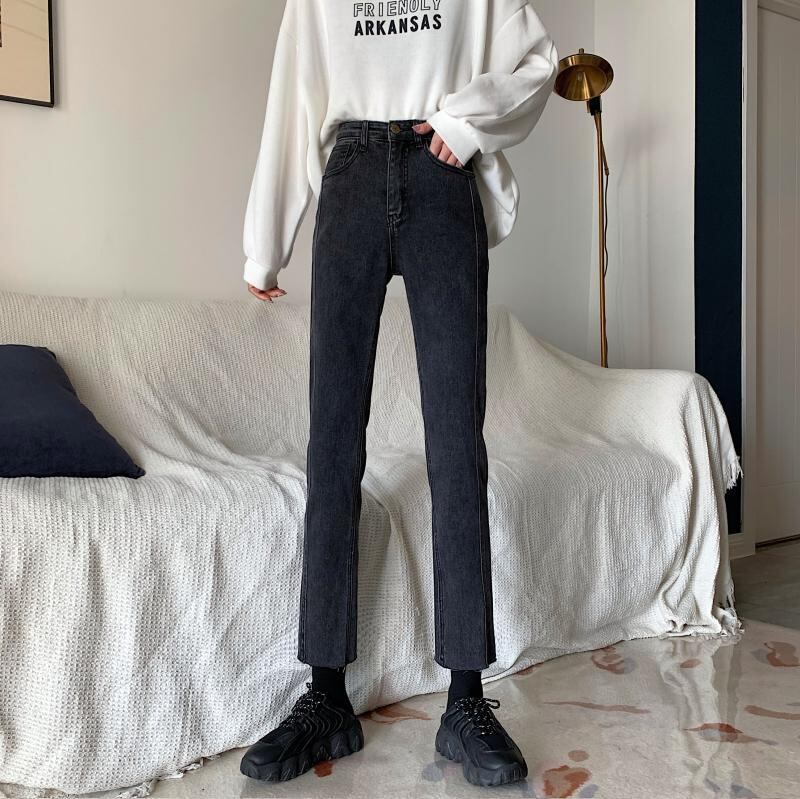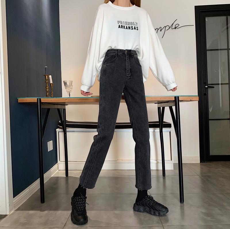 ブラックパンツ スプリングオータムスタンダードスタイルハイウェストウェストスリムルーズジーンズ レトロ 春物 秋物 スーパーモール90505728599