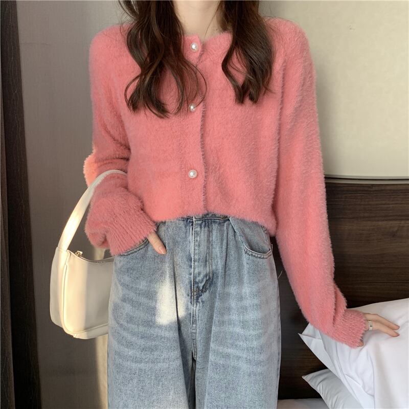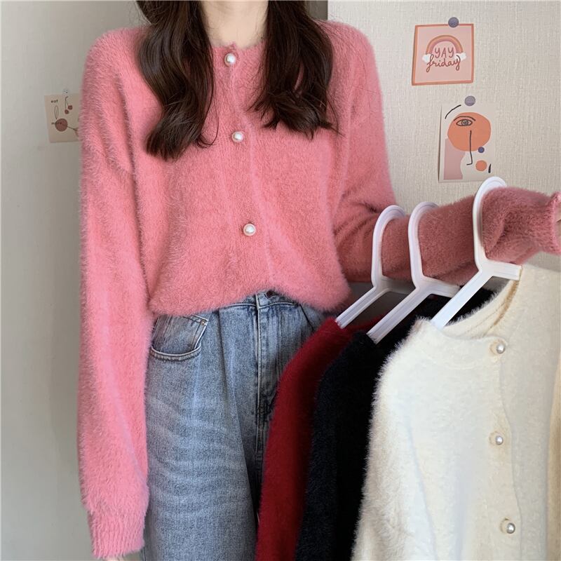 ルーズベルベットパールバックルセーター レディーススプリングオータムカーディガン ロング 春物 秋物 真珠 スーパーモール63233236802