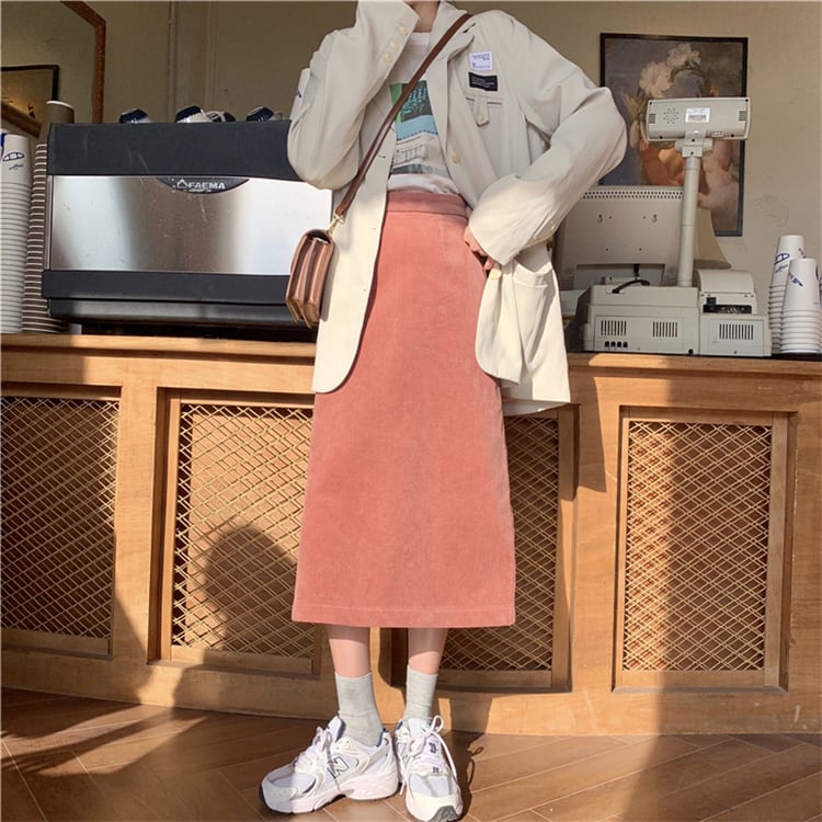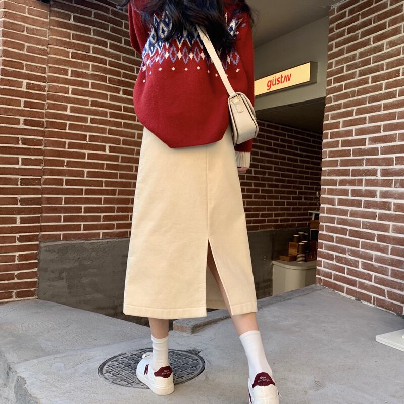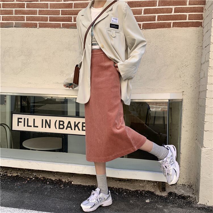 スタンダードコーデュロイスカート スプリングオータムベルベットハイウェストウェストAライン レトロ 春物 秋物 スーパーモール31304874184