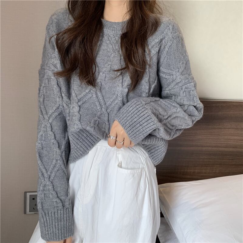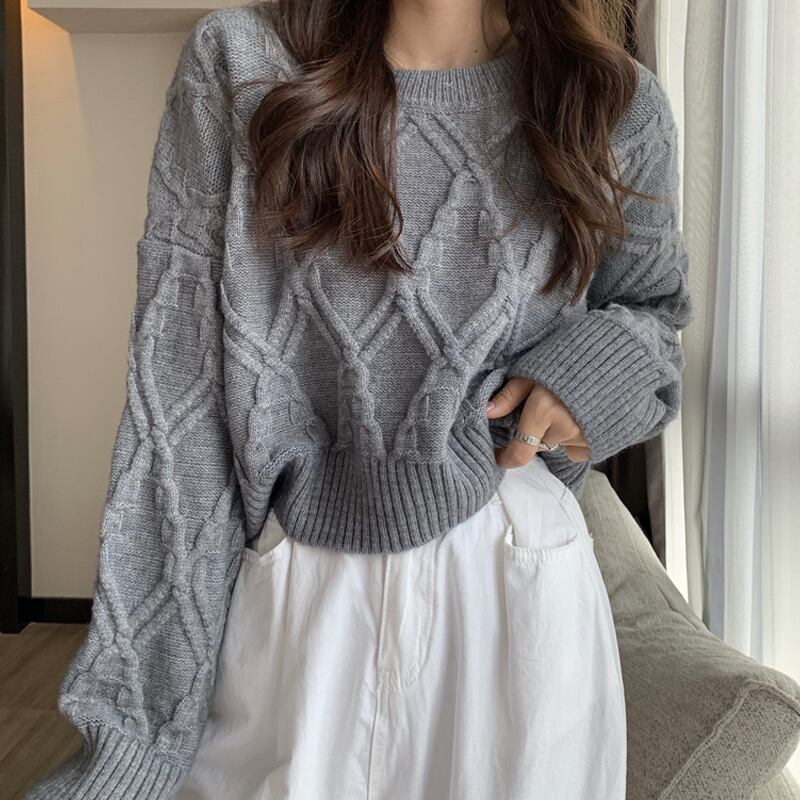 ショートセーター レディーススプリングオータムスタイルルーズニットトップス 春物 秋物 スーパーモール66598586727
