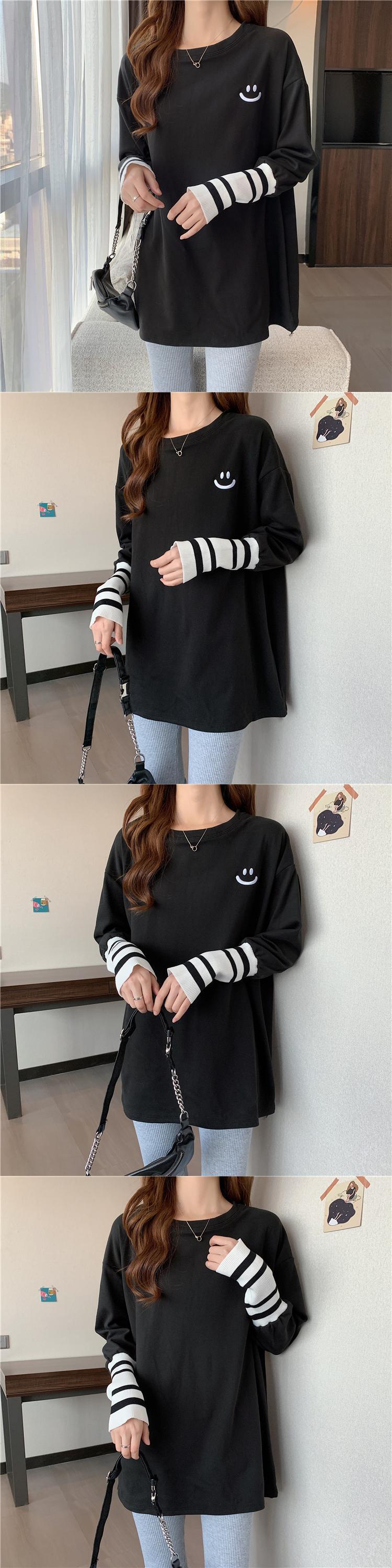 刺繍ベルベットTシャツ シャツ レディーススプリングスタイル ロング 春物 スーパーモール83925975307