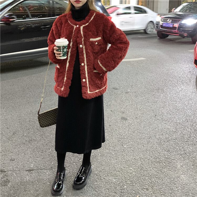 ルーズレッドウールコート オータムウィンタージャケット コットン 秋物 冬物 スーパーモール62730180200