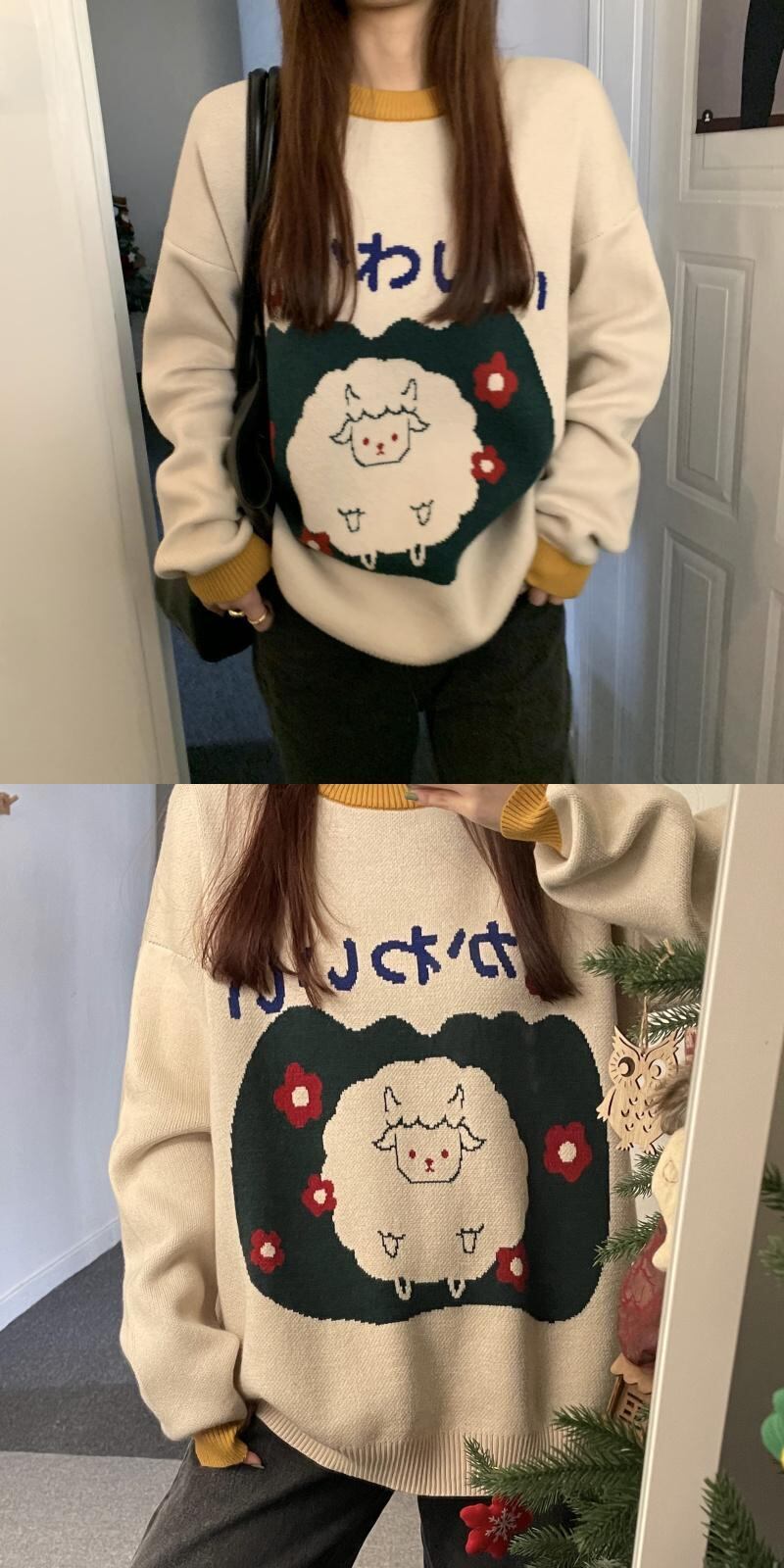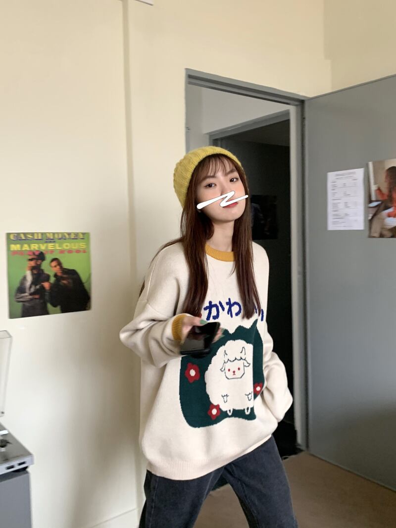 ジャカードセーター レディースルーズスプリングスタイルニットトップス ロング 春物 スーパーモール1856536667