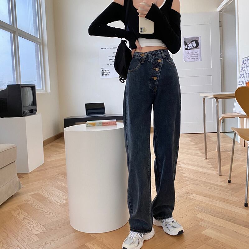 ハイウェストウェストジーンズ スプリングスタンダードスタイルパンツ ルーズ レトロ 春物 スーパーモール82582259076