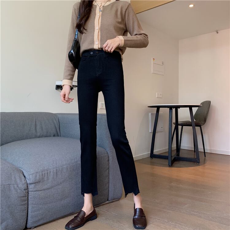 ブラックパンツ スプリングハイウェストジーンズ スリム 春物 スーパーモール9428821678