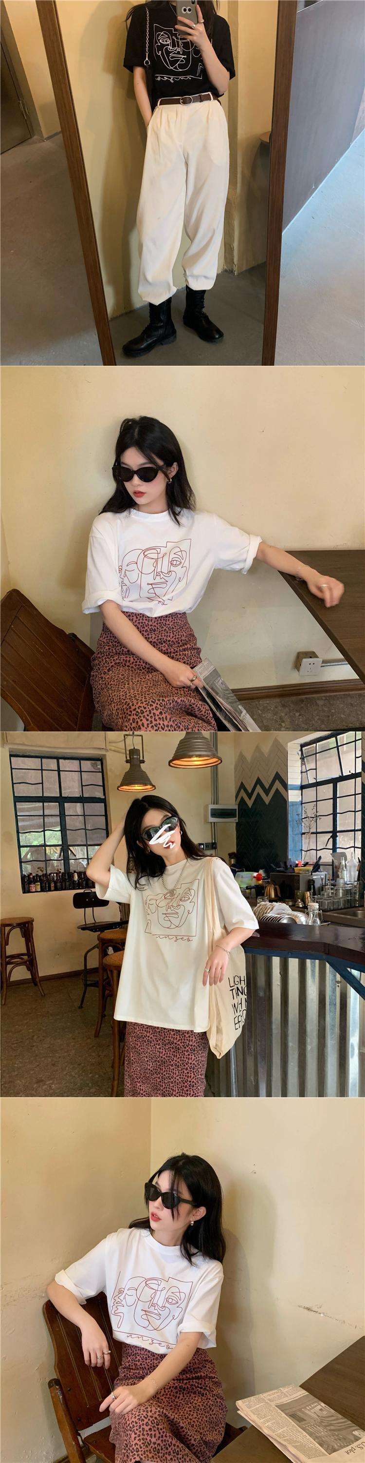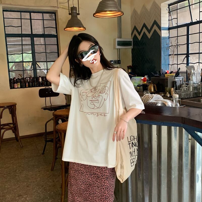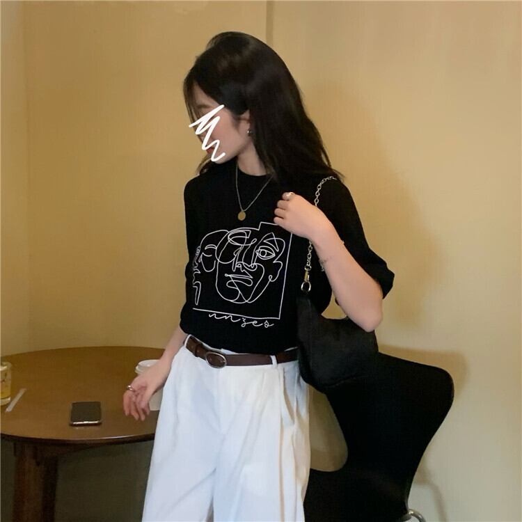 プリント柄Tシャツ シャツ スプリングルーズブラックトップス 春物 スーパーモール109084370