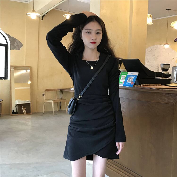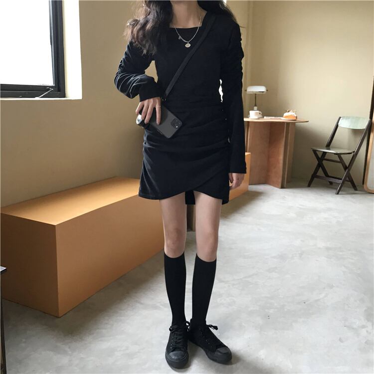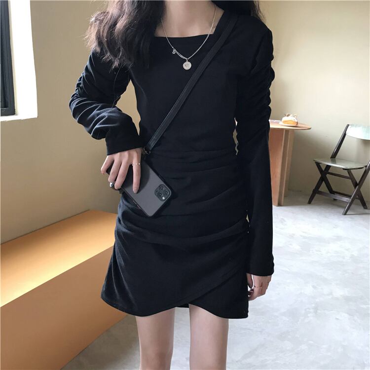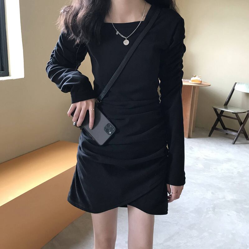 スプリングプリーツスカート スタイルブラックドレス 春物 スクウェア スーパーモール44188425362