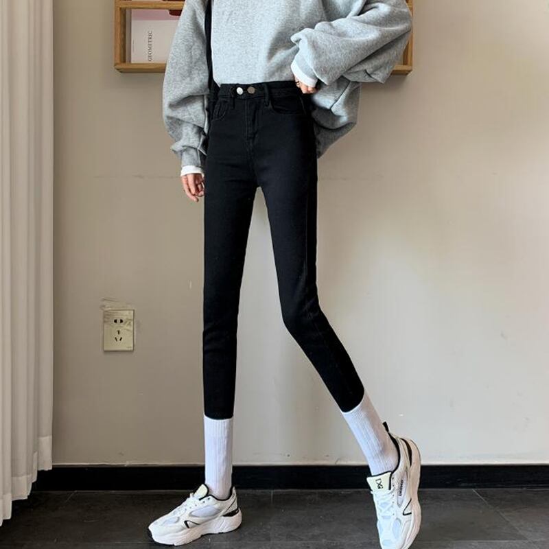 スタンダードベルベットレギンス スプリング薄手パンツ ブルーハイウェストウェストジーンズ レディース レトロ 春物 スーパーモール49443246496