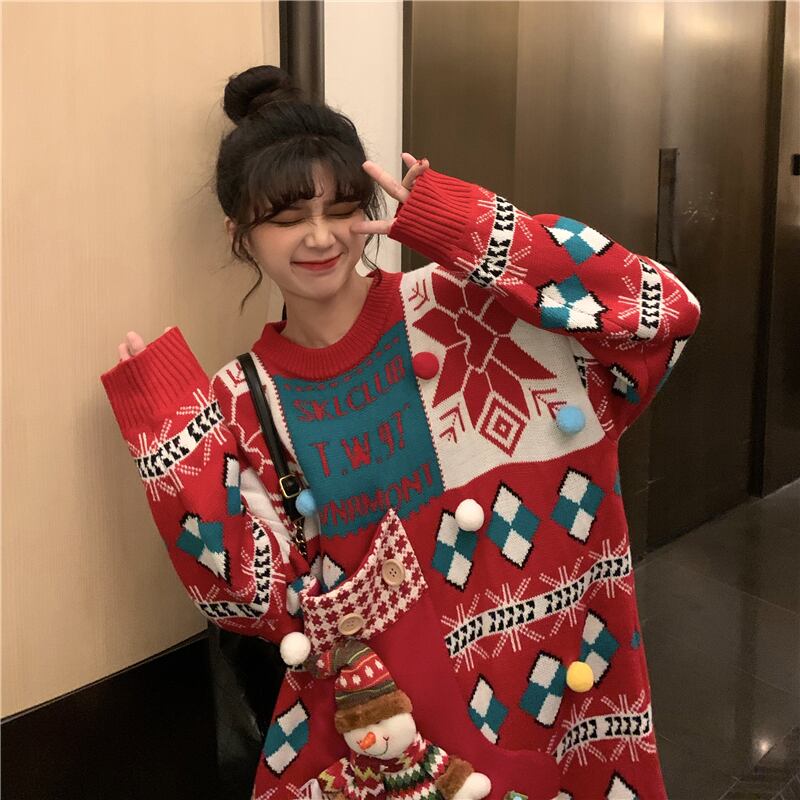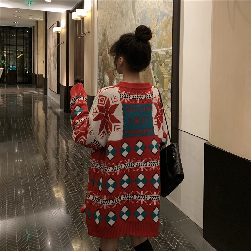 スタンダードセーター スプリングオータムルーズレッドトップス レトロ 春物 秋物 スーパーモール86547486985