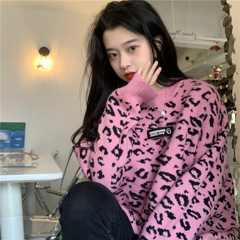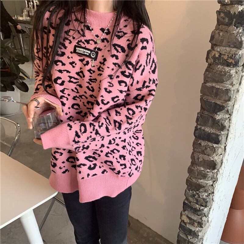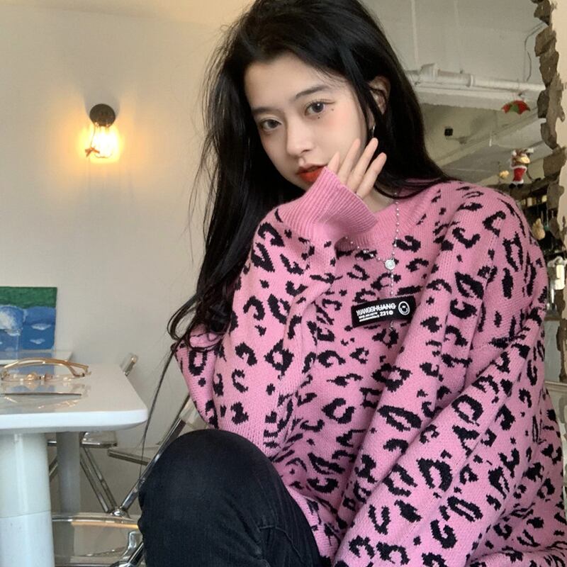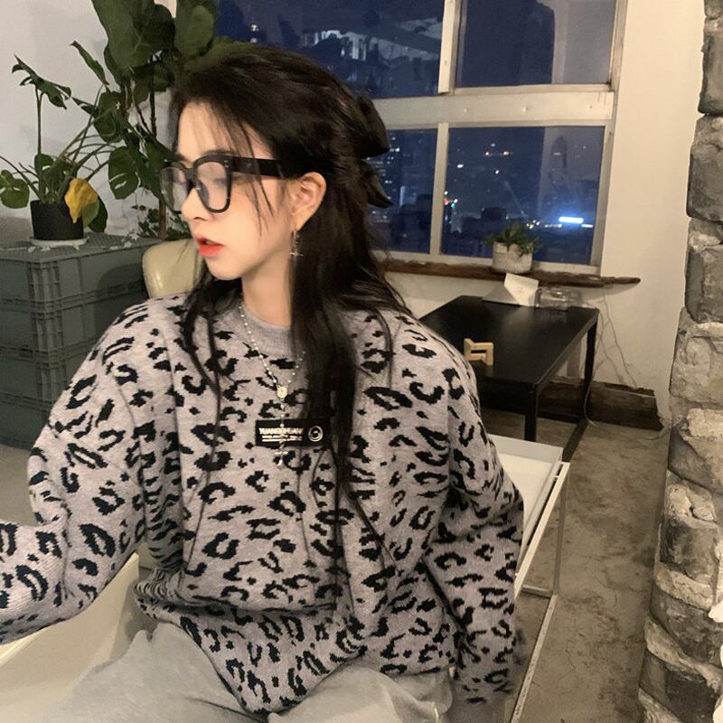 レオパードプリント柄セーター ウィンタールーズスタンダードトップス レトロ 冬物 スーパーモール85476072228