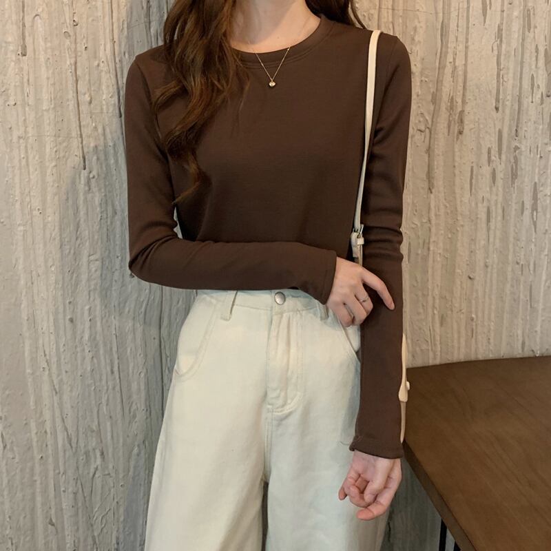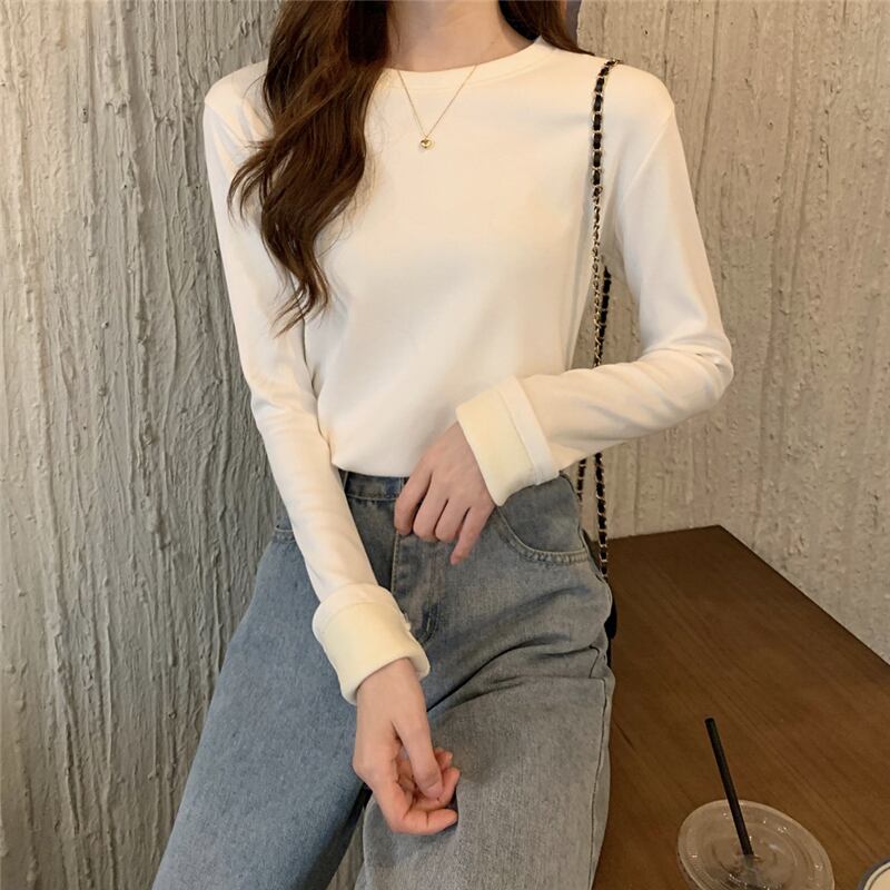 ホワイトスタイルラウンドネックTシャツ シャツ ベルベットスプリングトップス ロング 春物 Oネック スーパーモール92118113353