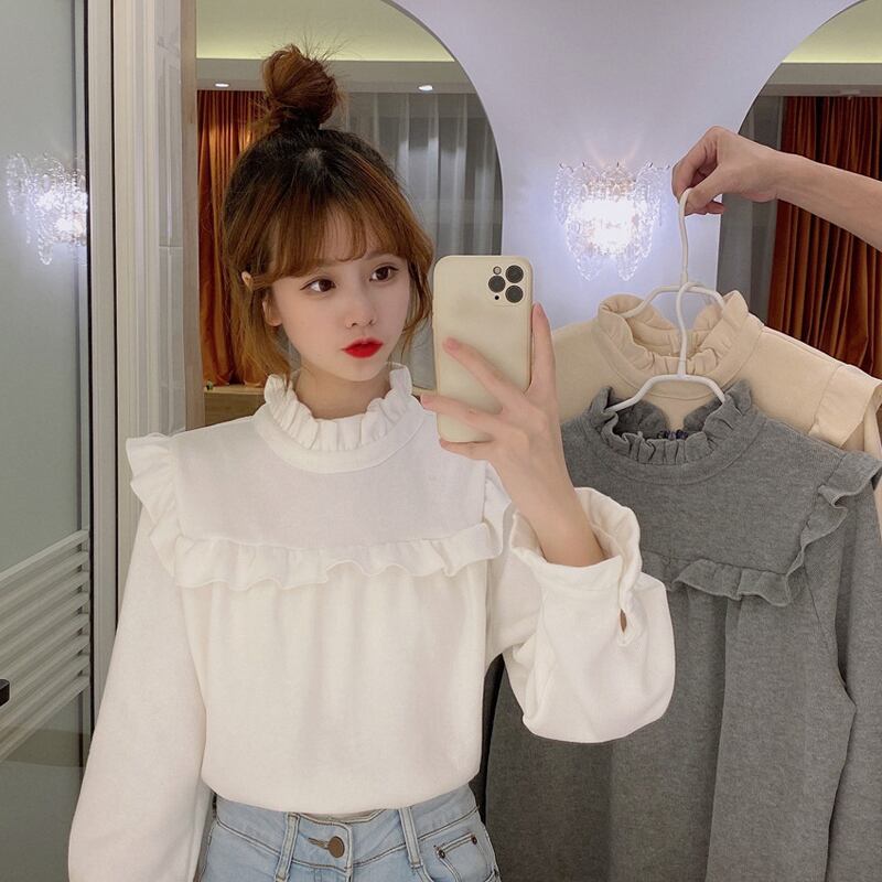 スプリングオータムカラーブラウス プルオーバー セーター レディース ロング 大人ガーリー スウィート キュート カジュアル 春物 秋物 スーパーモール66588854936