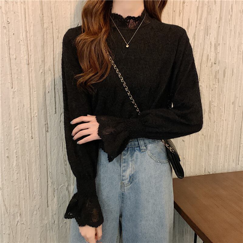 スタイルレースシャツ レディーススプリングベルベットプルオーバー トップス ロング 春物 スーパーモール61778402889