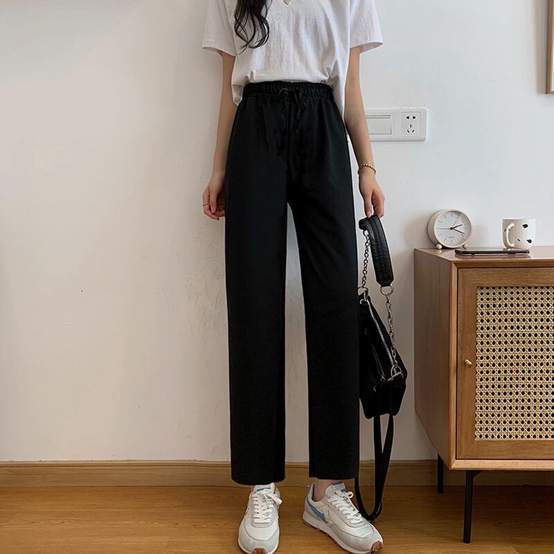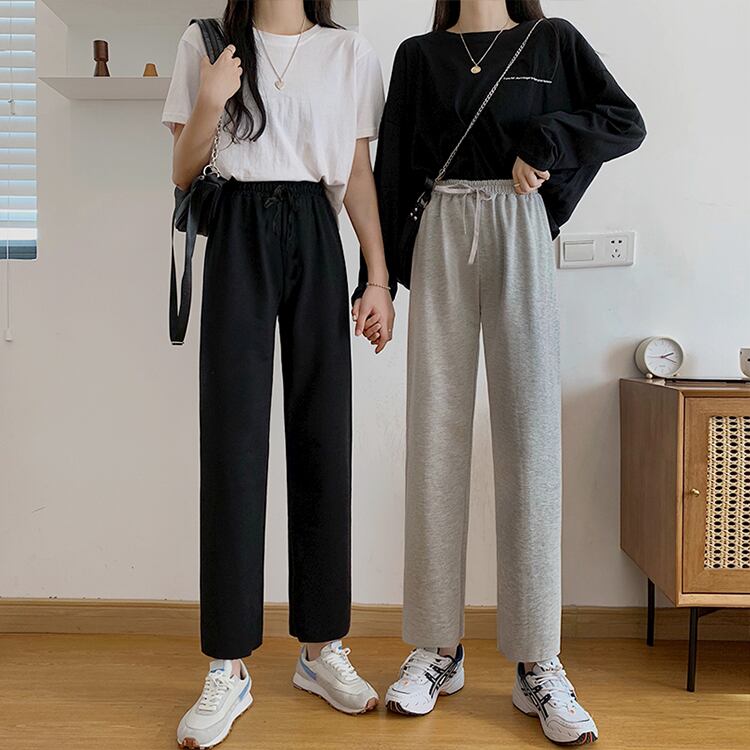 グレーパンツ スプリングオータム薄手ルーズワイドレッグハイウェストウェストブラックカジュアル 春物 秋物 ワイドパンツ スーパーモール56507635788