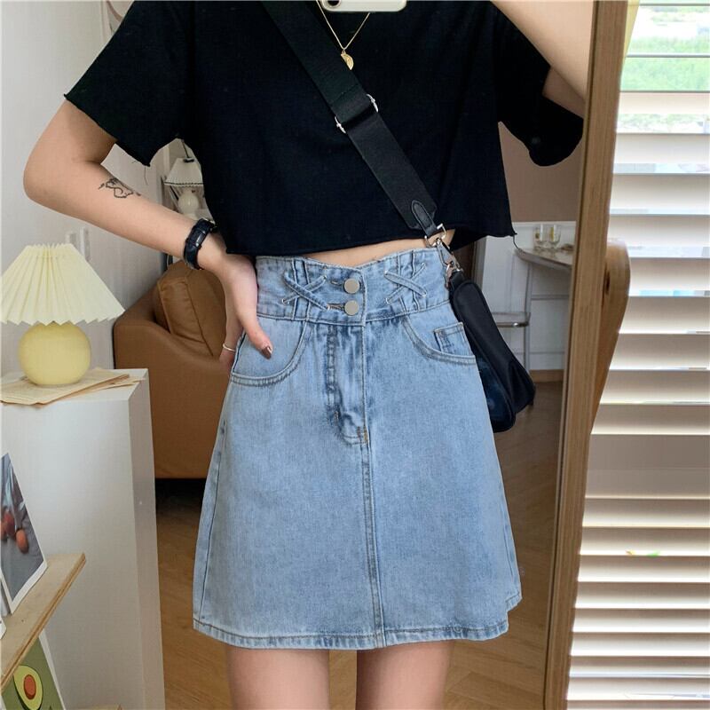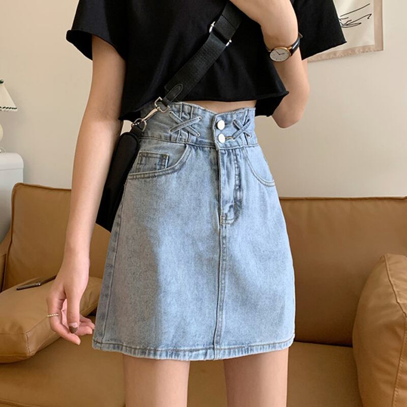 薄手ハイウェストウェストスカート スプリングAラインブルーショート 春物 スーパーモール70571579925